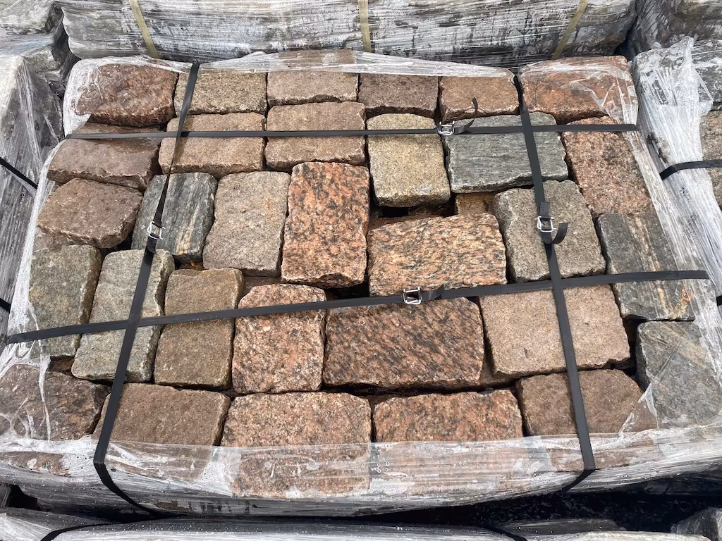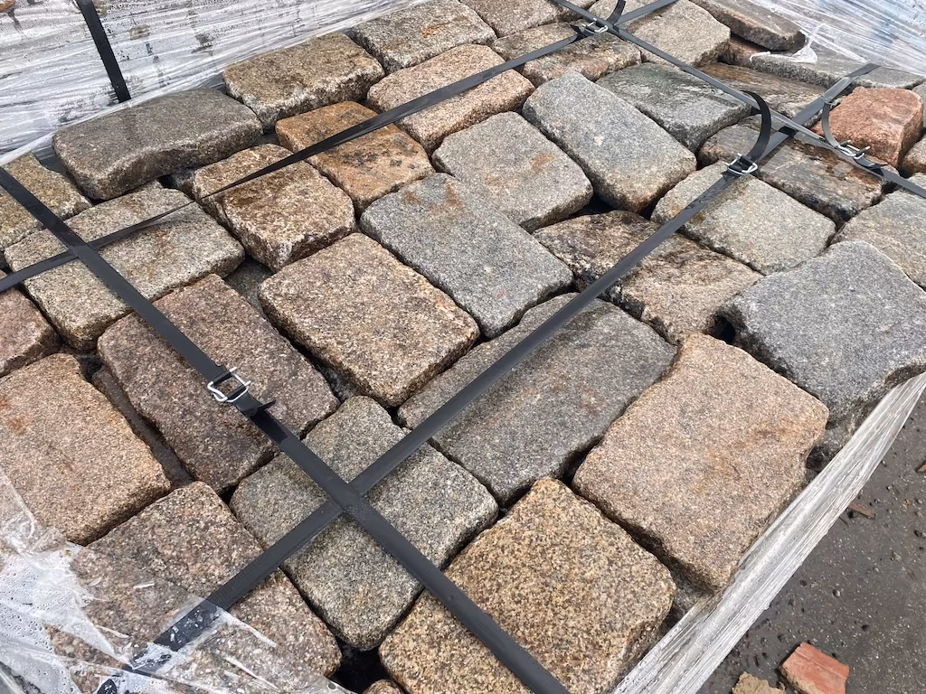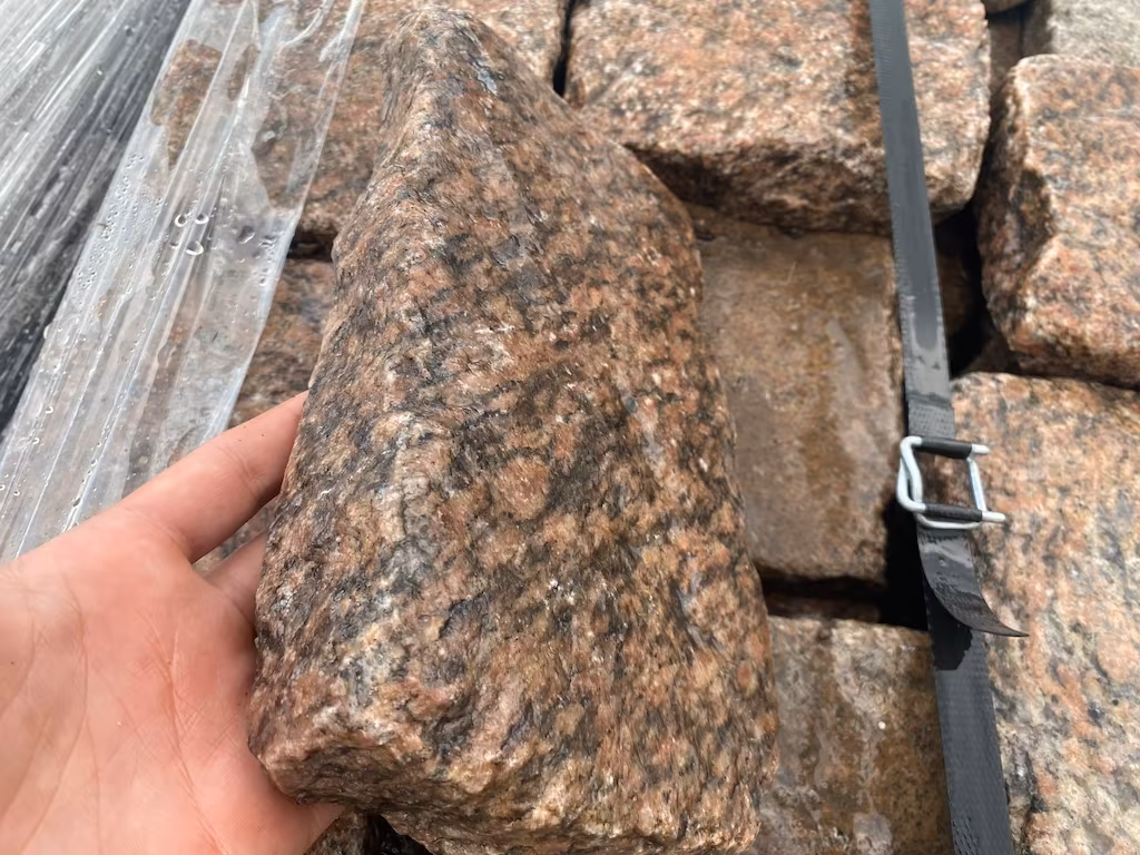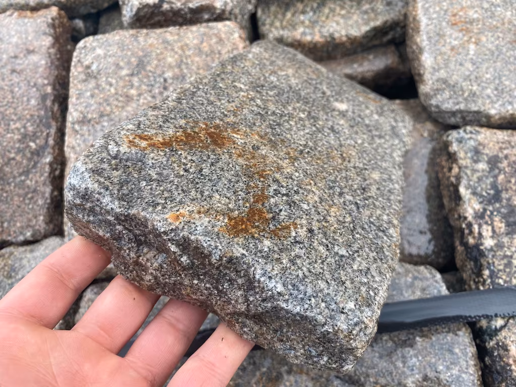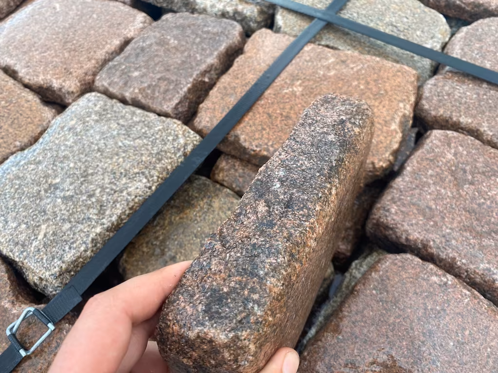 Oferujemy antyczną kostkę granitową w formacie ok. 15 × 20 × 3–5 cm, wykonaną z barwnego granitu. Materiał pochodzi z historycznej zabudowy i zachował autentyczny charakter kamienia sprzed około 200 lat.