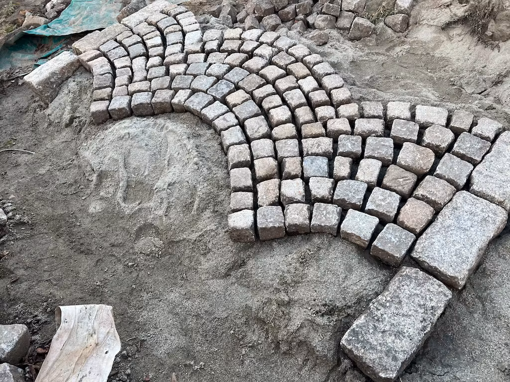 Jest to autentyczny materiał pozyskany z dawnych nawierzchni brukowych, datowany na ok. 200 lat.