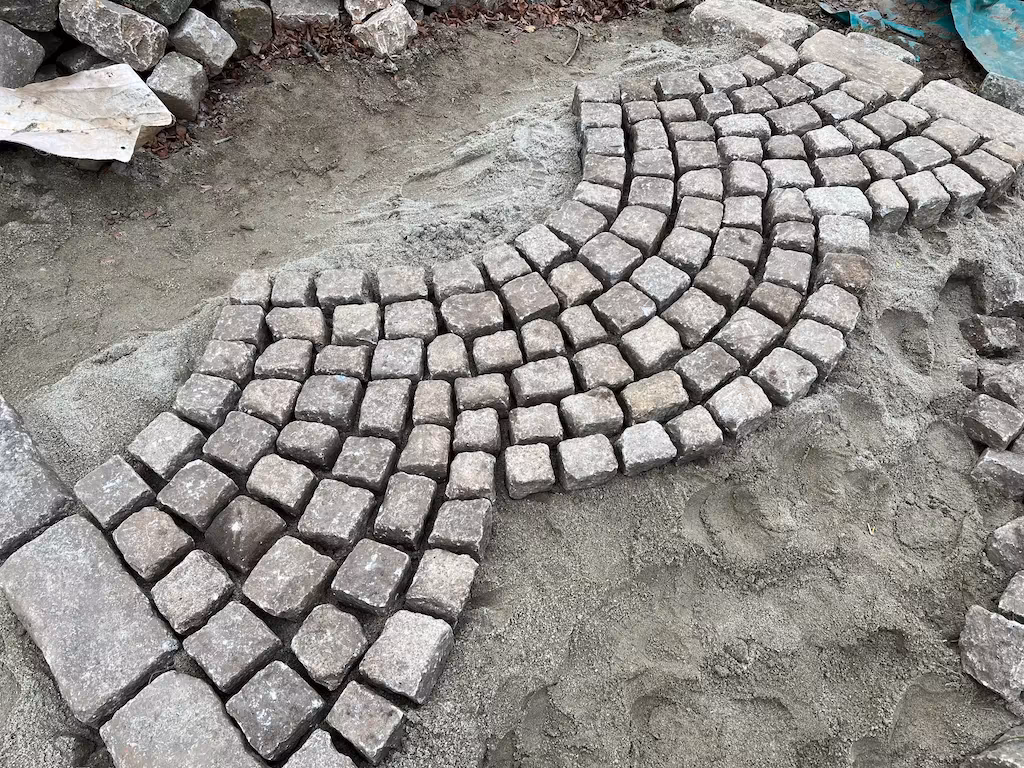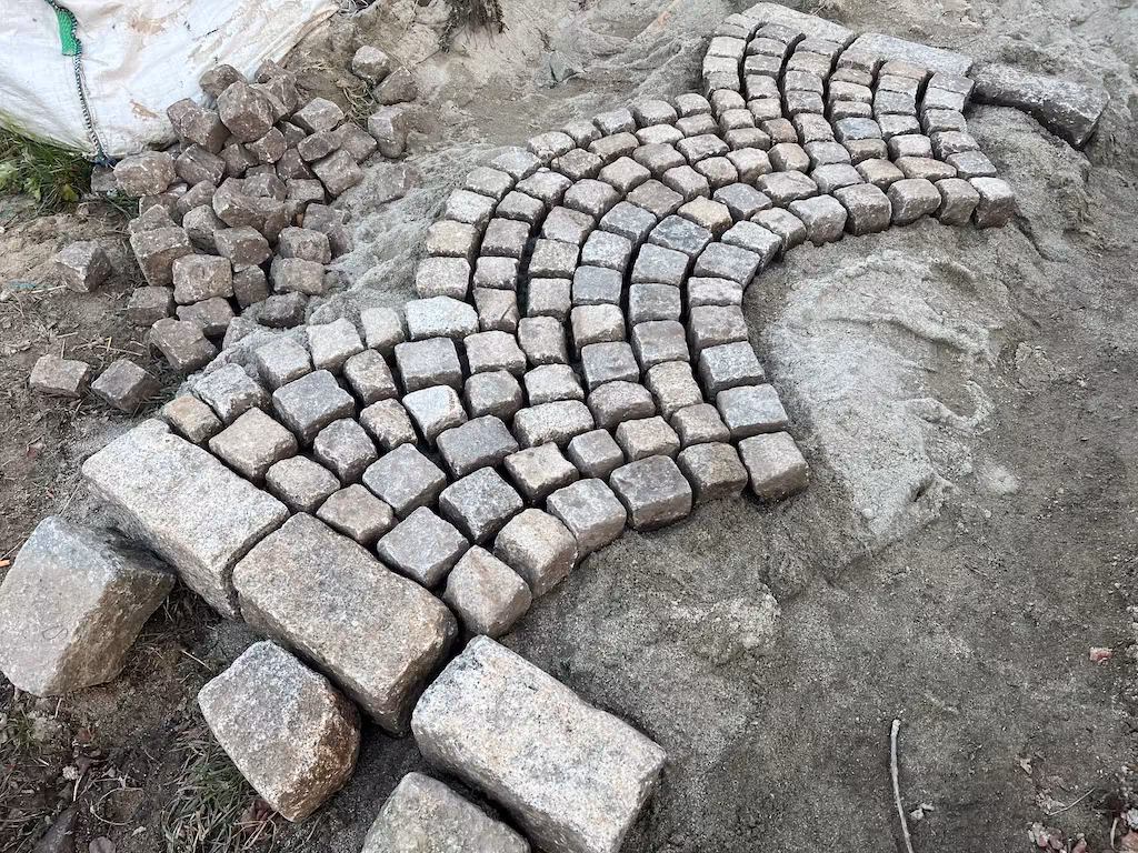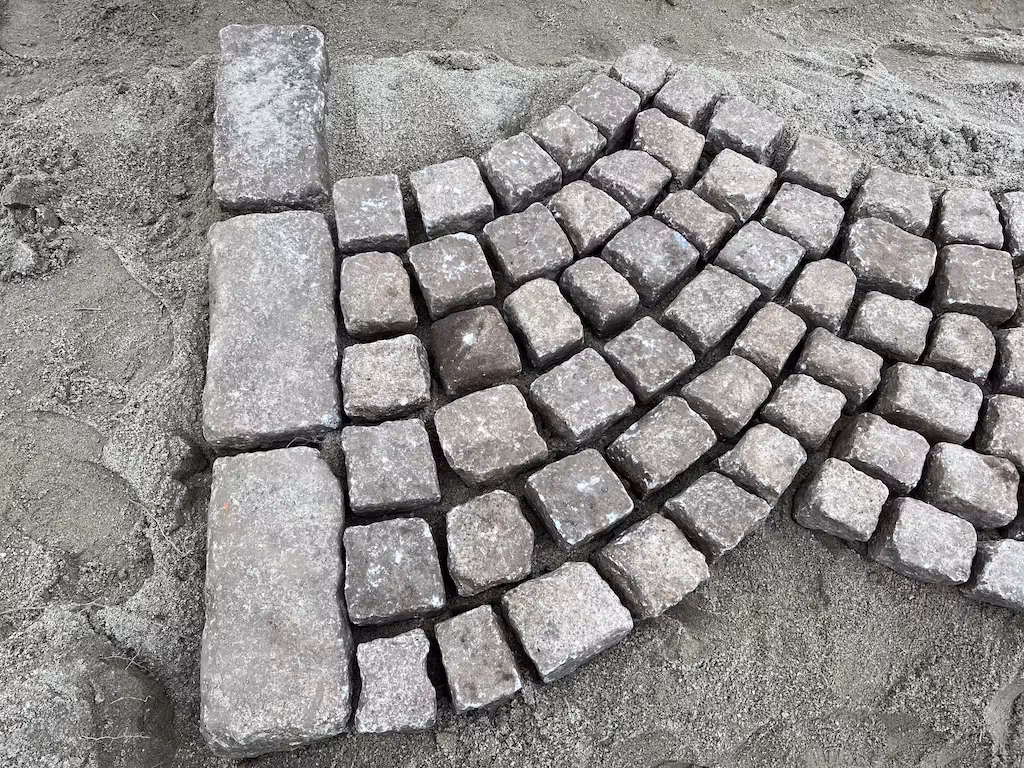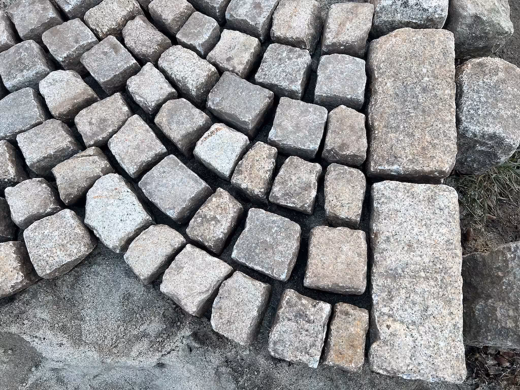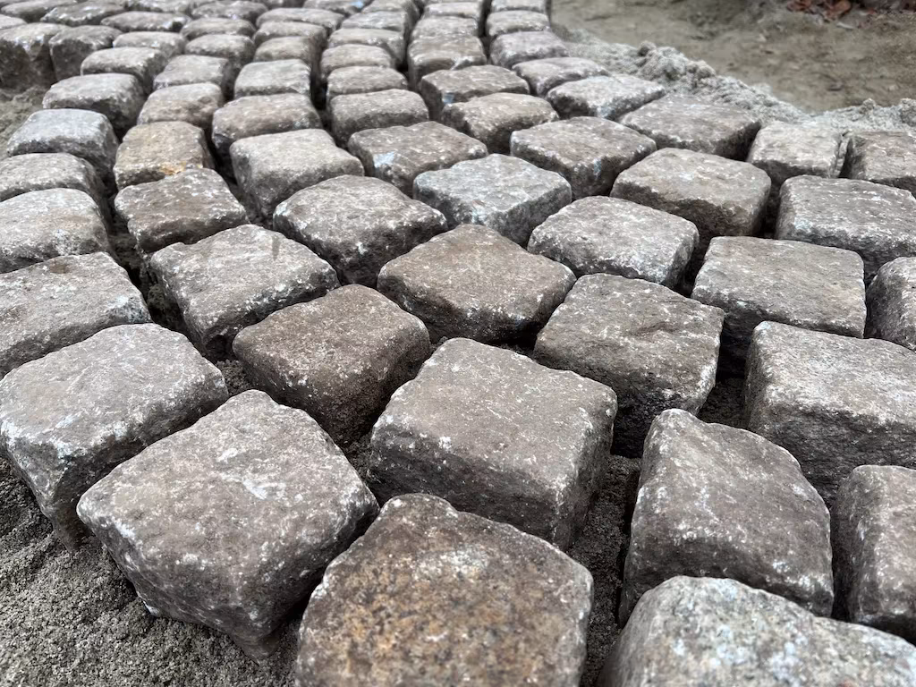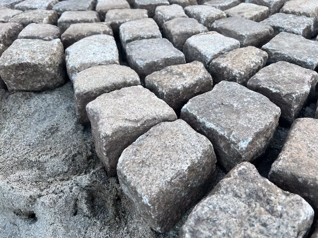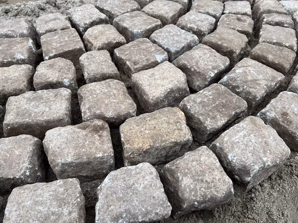 Historyczna kostka granitowa szaro-żółta 8 × 11 cm